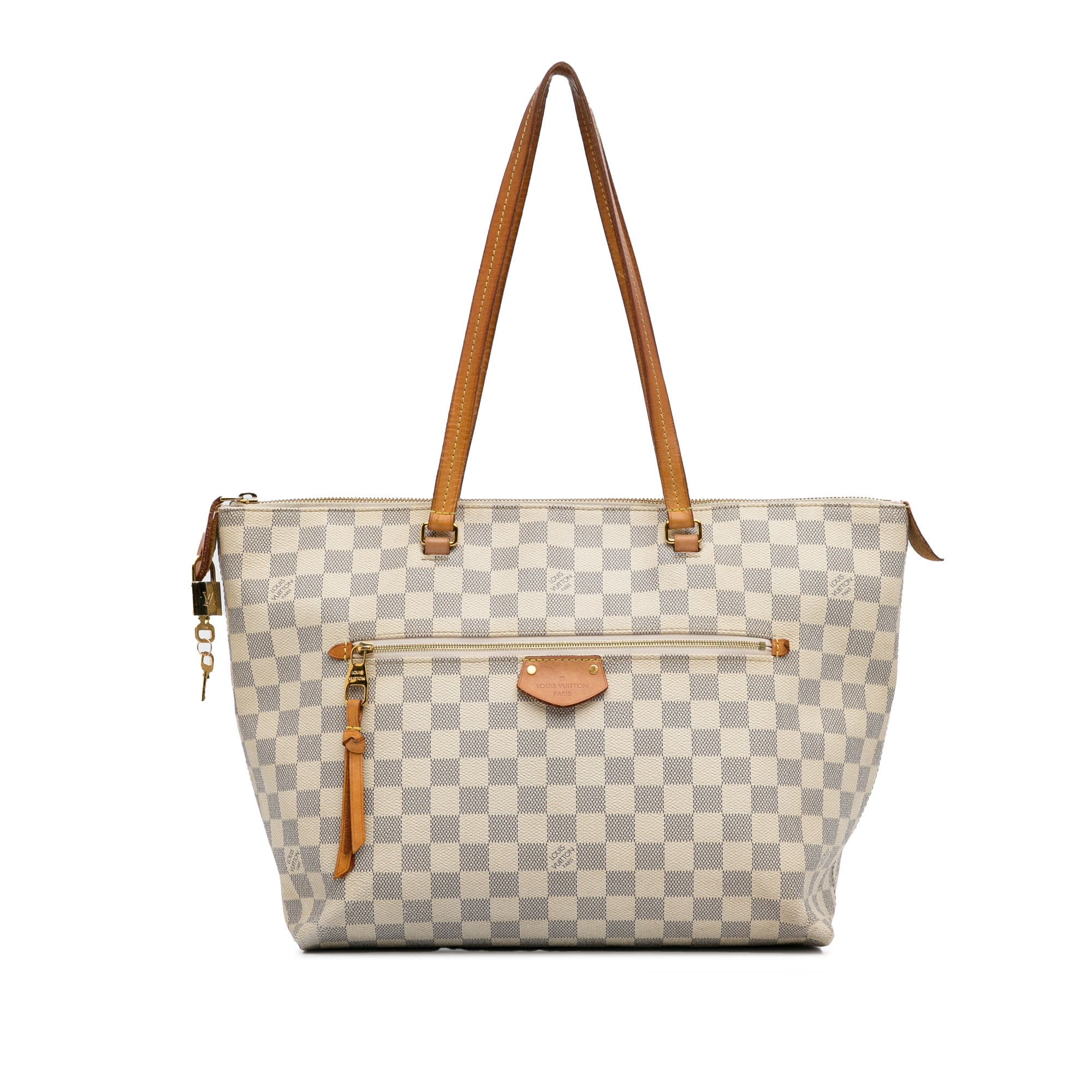 Pre-Owned Authenticated Louis Vuitton Damier Azur Iena MM Canvas White Tote Bag Unisex (Fair)
