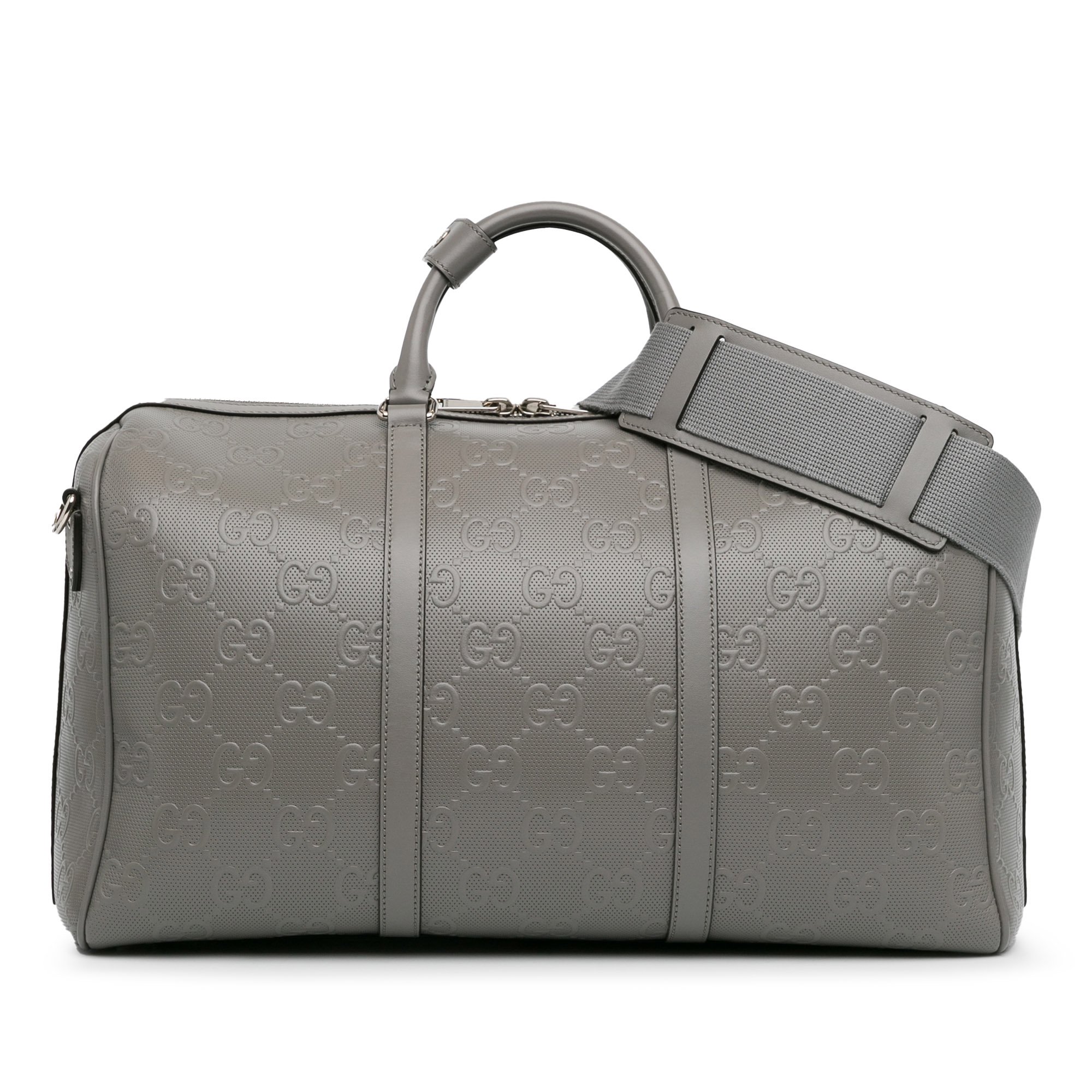 Pre-Owned Authenticated Gucci Small Jumbo GG Duffle Bag Calf Leather Gray Travel Bag WeekenderBag Unisex (Good)