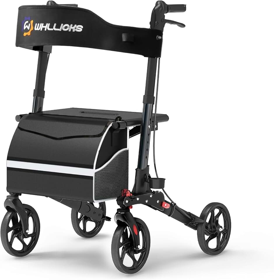 Rollator Walkers for Seniors with Seat, Foldable Durable Aluminum 8" Non-Slip Wheels All Terrain Lightweight Rolling Walker with Comfortable Backrest, Height Adjustable Handles, Cane Holder