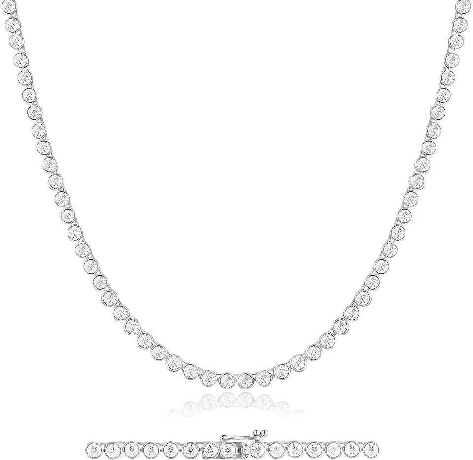 Sterling Silver Moissanite Tennis Necklace:White Gold Plated 925 Silver Round Chain Sparkling VVS1 Solitaire Precious Wedding Birthday Valentine's Day Christmas Brides Jewelry Gift for Women