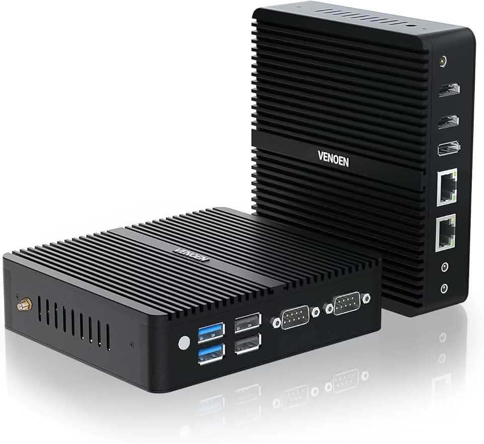 VENOEN Fanless Mini PC Win 11 Pro Industrial PC 12th Gen in-tel J6412 Processor, 8G DDR4 256G M.2 SSD Office Home Industrial Mini Computer, 2xHD+DP Triple Display/2xLan/2xRS232 COM/WiFi/BT 4.2
