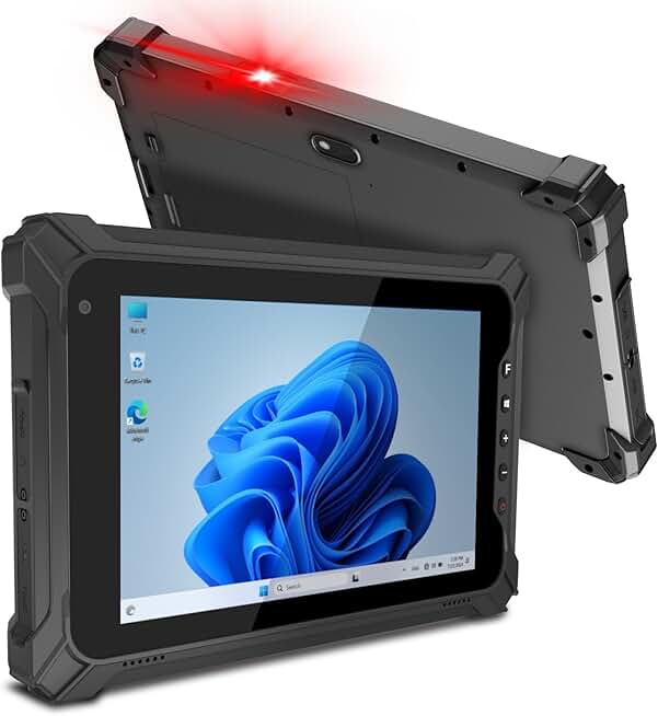 Rugged Windows11 Tablet with Barcode Scanner, 8" IP65 Enterprise Inventory Tablet Equip with N4680 Scan Engine 1D 2D Barcode Scanning, NFC Reader, 4G WiFi Pad Scanner for WMS ERP