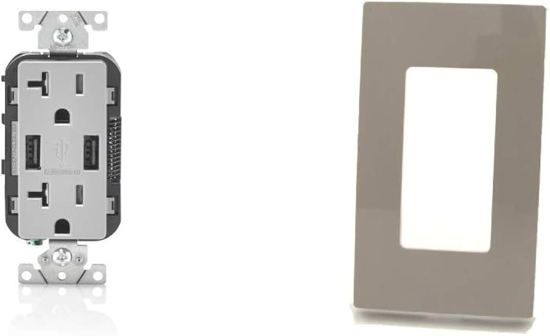 T5832-GY USB Charger/Tamper-Resistant Duplex Receptacle, 20-Amp, Gray with Screwless Wallplates, 8-Pack