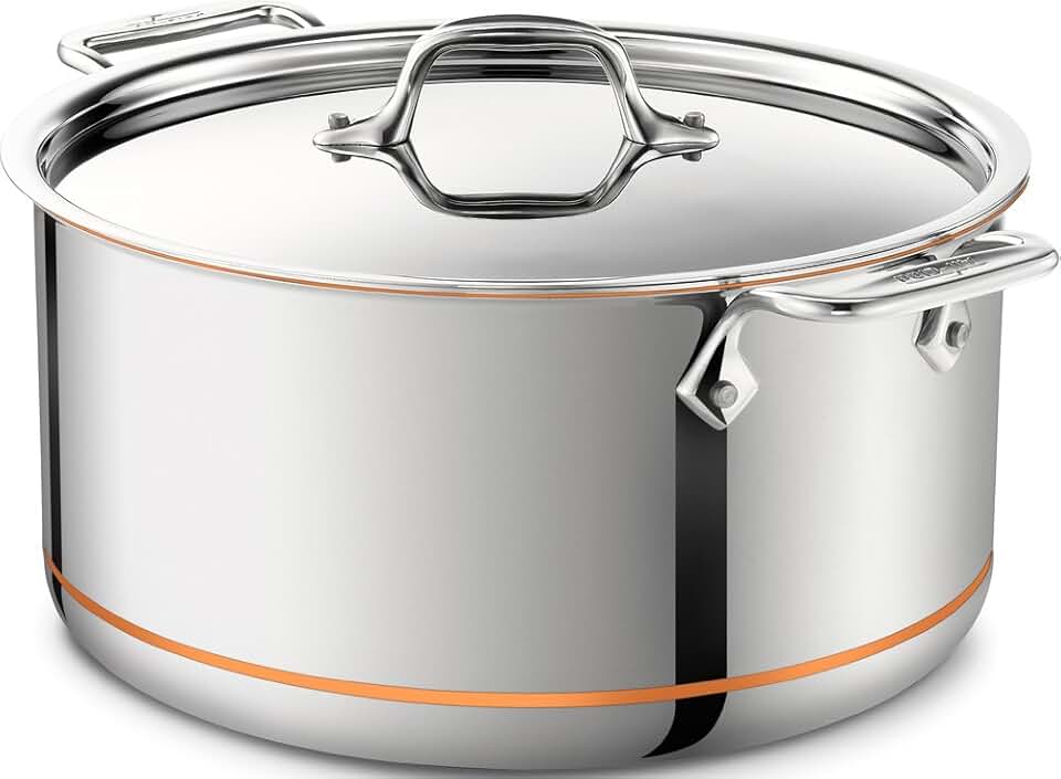 All-Clad Copper Core 5-Ply Stainless Steel Stockpot 8 Quart Induction Oven Broiler Safe 600F Pots and Pans, Cookware Silver