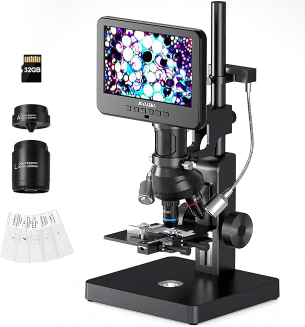 JL266S 5 Lens HDMI Digital Microscope 5000X, 24MP Biological Microscope for Adults Kids Home Lab, Error Coin Microscope for Full View, 7'' IPS LCD Screen, Windows PC Compatible, 32GB Card