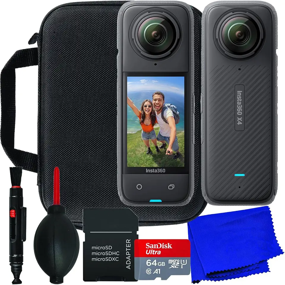 Ultimaxx Insta360 ONE X4 Basic Bundle + SanDisk 64GB Ultra Micro SDXC Memory Card, Water-Resistant Action Camera Case with Pre-Cut Foam Inserts, Manufacturer Accessories & More (10pc Bundle)