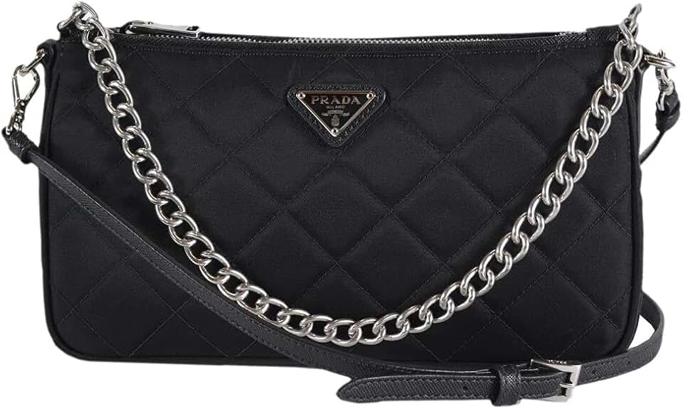Prada Quilted Tessuto Nylon Chain Black Convertible Shoulder Bag 1BH026