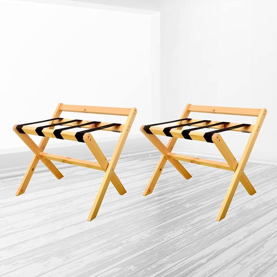 2pcs Folding Luggage Rack - Hotel Wooden Suitcase Stand, Travel Bag Holder with Nylon Straps, Guest Room Suitcase Stand, Luggage Stool, for Hotel Bedrooms (Color : B)