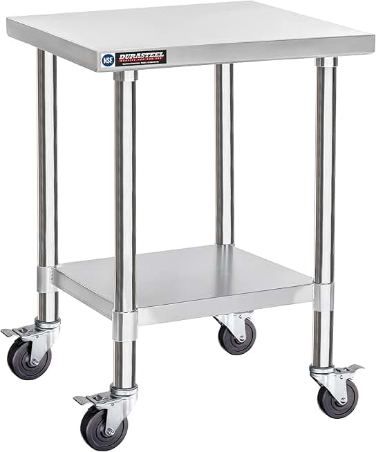 DuraSteel Food Prep Stainless Steel Table - 24 x 24 Inch Metal Table Cart - Commercial Workbench with Caster Wheel - NSF Certified - For Restaurant, Warehouse, Home, Kitchen, Garage, Chrome