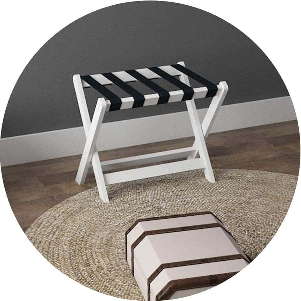 Guest Room Luggage Rack, Folding Suitcase Stand Suitcase Stand Foldable Solid Wood Travel Bag Vacation Storage Accessories Hotel Easy to Move Belt Hanging Rod (Color : White, Size : 60x41x59cm) (