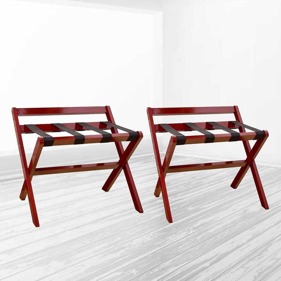 2pcs Folding Luggage Rack - Hotel Wooden Suitcase Stand, Travel Bag Holder with Nylon Straps, Guest Room Suitcase Stand, Luggage Stool, for Hotel Bedrooms (Color : A)