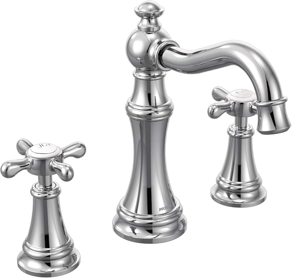 Moen Weymouth Chrome Two-Handle Widespread Cross Handle Bathroom Faucet Trim Set, Valve Required, TS42114
