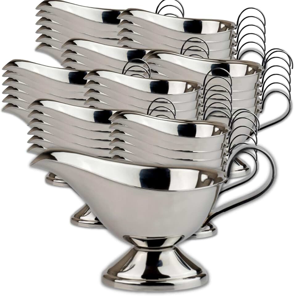 Steelite Creations Metal Gravy Boat, 10 Oz Size, Pitcher Server, Spout Lip, Handle with Base, Large Serving Gravy Pourer for Sauces, Dressings, Butter, Syrup, Commercial Foodservice Restaurant, 48 Pc