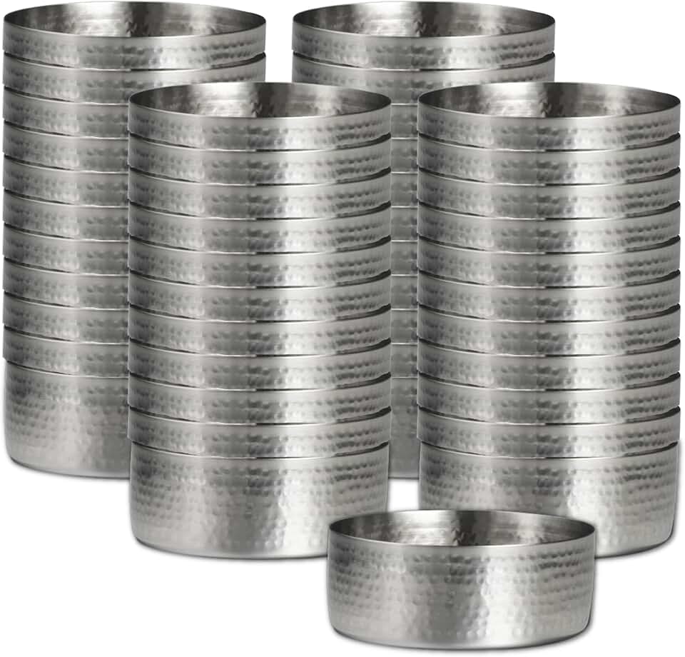 Steelite Creations Stainless Steel Ramekins, Stackable, Hammered, 8.5 Ounce, Restaurant, Commercial and Foodservice, Shallow Metal Containers for Dips, Sauces, Salad Dressing, Dishwasher Safe, 48 Pcs