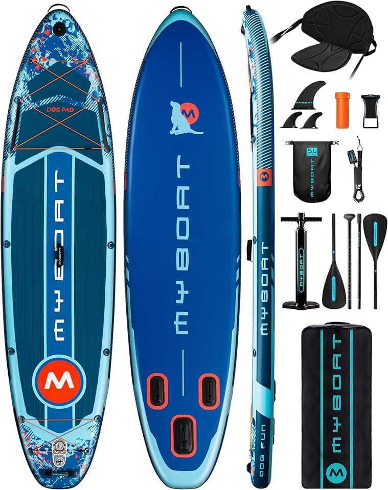 11'6"×34"×6" Extra Wide Inflatable Paddle Board, Stand Up Paddle Board for Fishing, Sup Board with 3 Removable Fins, Dual Bungees, Camera Mount, Hand Pump, Strong Paddle, 5L Dry Bag, Leash