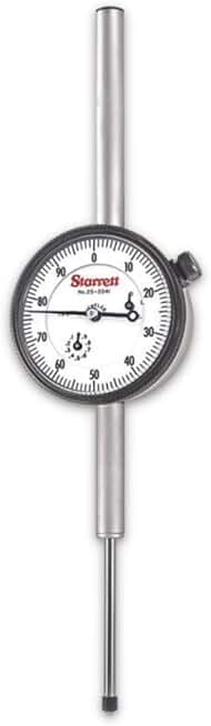 Starrett 25 Series Dial Indicator with Jewel Bearings and Lug-On-Center Back - White Face, 0-2.000" Range, 0-100 Continuous Dial, .001" Graduations - 25-2041J