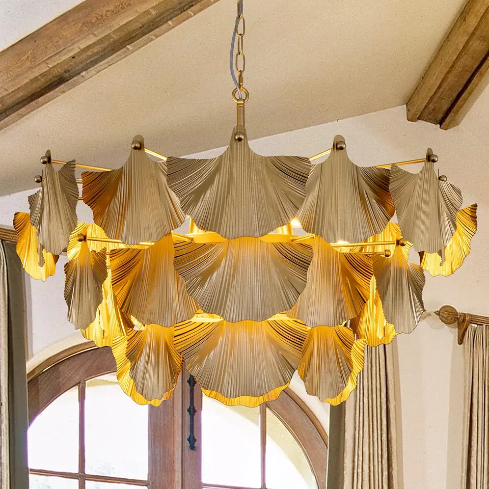TOCHIC 33.9" Gold Farmhouse Chandelier, 10 Lights Modern Chandeliers for Dining Room, Rustic Chandelier with Ginkgo Leaves, Ceiliing Light Fixture for Living Room, Bedroom, Kitchen, Entryway