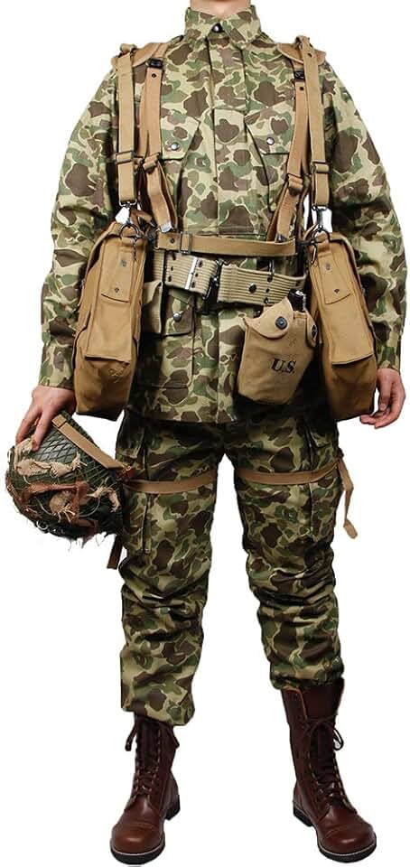 WW2 US Army M42 Airborne Paratrooper Pacific Camouflage Equipment with M1c Helmet M36 Bag and 101Boot