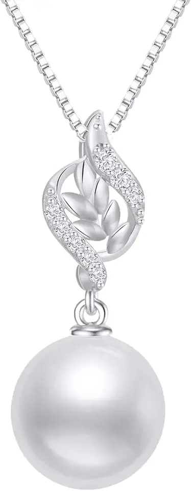 14k Gold Diamond Leaves Pearl Necklaces for Women, Real Gold Box Chain and Pendant, Anniversary Present for Wife, Christmas Jewelry Gifts for Her, 16-18 In