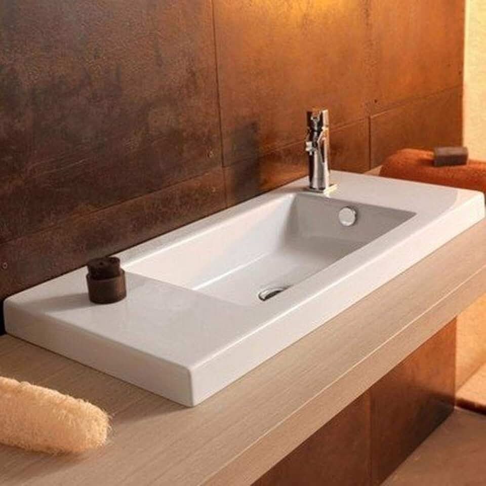 Tecla 3501011-One Hole Series 35 Rectangular Ceramic Wall Mounted/Built In Sink, White