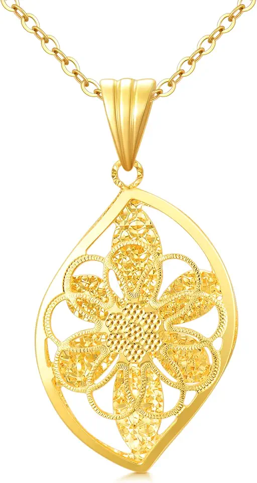 SISGEM Real 18k Gold Flower Leaf Pendant Necklace for Women, Fine Jewelry Prensent for Her, Gold Chain 16-18 Inch