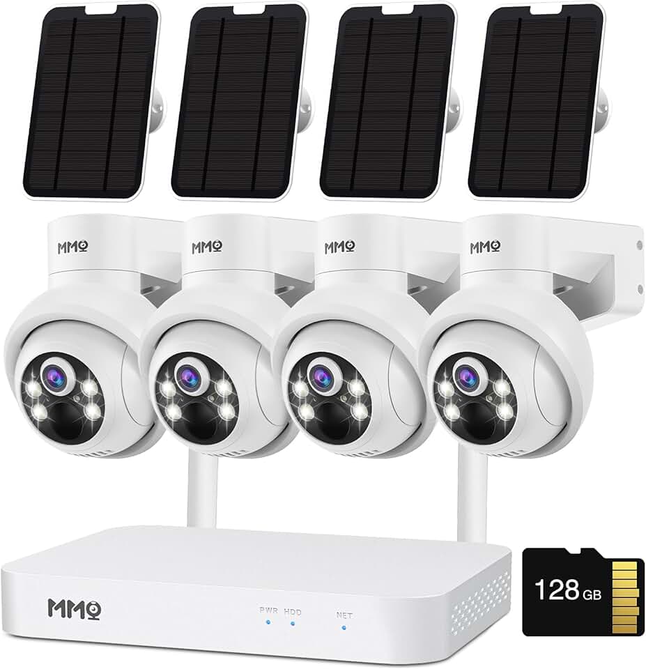 【2.5K】 MMQ Wireless Solar Security Camera System, 10CH 4MP HD Solar Cameras, PTZ Camera Outdoor WiFi, Home Surveillance Camera Worked with Alexa, PIR Detection, Two Way Talk,128GB