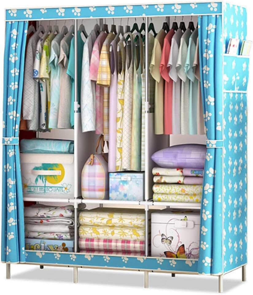 Portable Canvas Wardrobe,Foldable Clothes Closet Storage Organizer with Hanging Rail,Shelves,Side Pockets,Fabric Wardrobe for Clothes,Bags,Blue-125x45x168cm