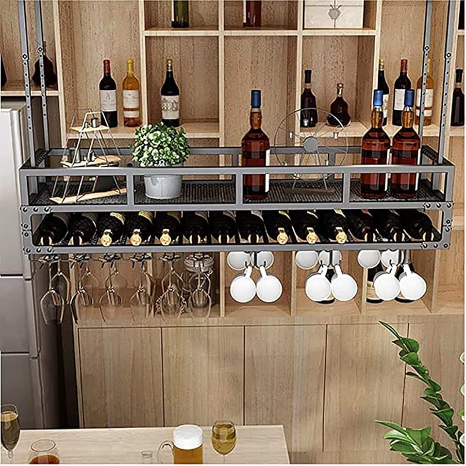 Industrial Vintage Metal Ceiling Wine Rack, Height Adjustable, Goblet Stemware Holder, Wine Bottle Holder, for Restaurants/Bars/Home Ceiling Decorative Flower Shelf (Size : 100cm)