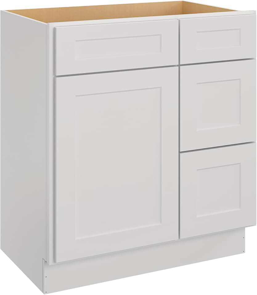 LOVMOR 30'' Bathroom Vanity Sink Base Cabinet, Storage Cabinet with 3-Drawers on The Right, Suitable for Bathrooms, Kitchens, Laundry Rooms and Other Places.