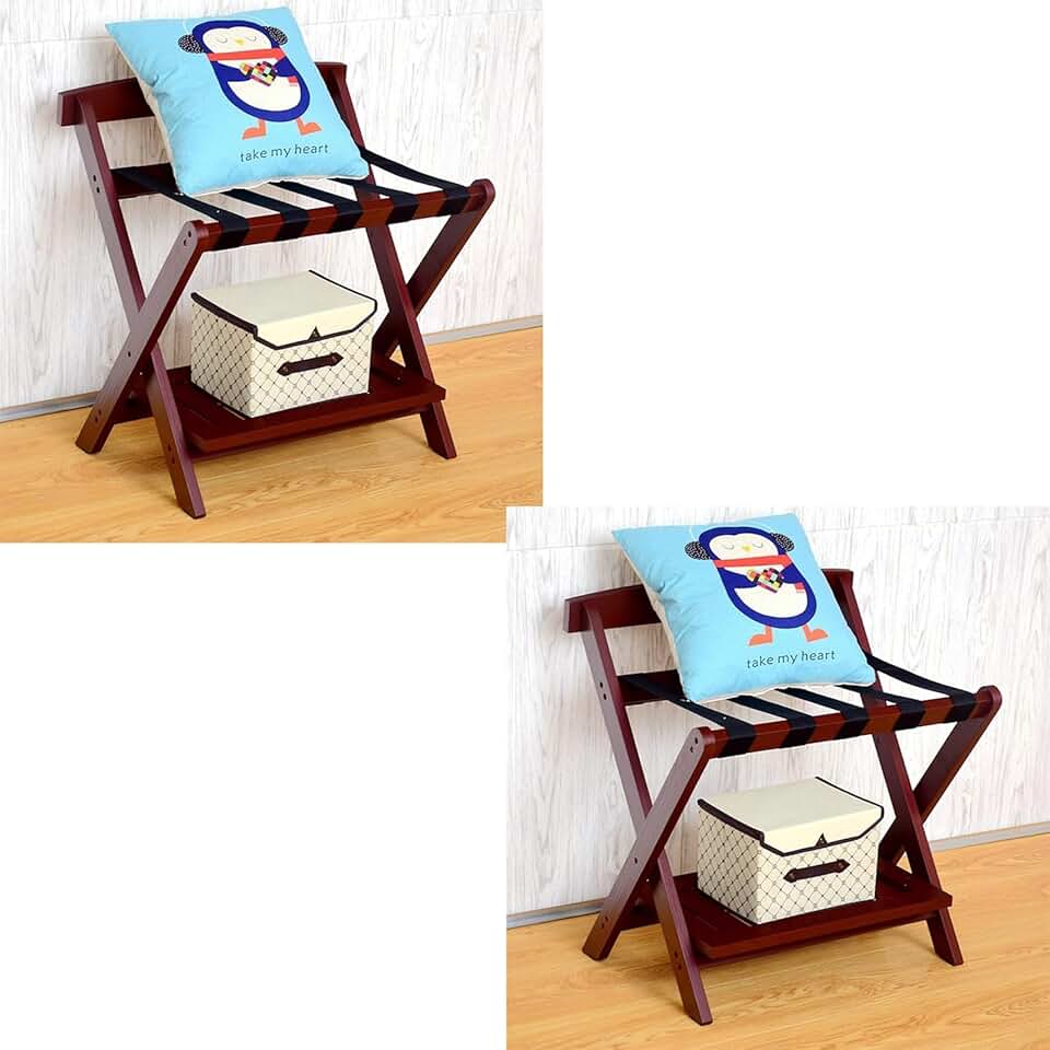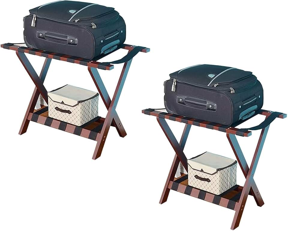 Luggage Rack for Guest Room - Suitcase Stand with Shelf, Foldable Double Layer Luggage Rack,Travel Bag Organizer with Shoe Rack, Clothes Storage Shelf, Hotel/Bedroom/Guest Room, Solid Wood (Color