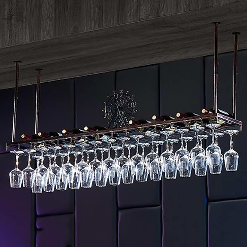 Wine Rack Wine Shelf Industrial s Ceiling Wine Holder Adjustable Height Wall-Mounted Iron Stemware Shelf for Bars Restaurants Kitchens (Size : 100cm)