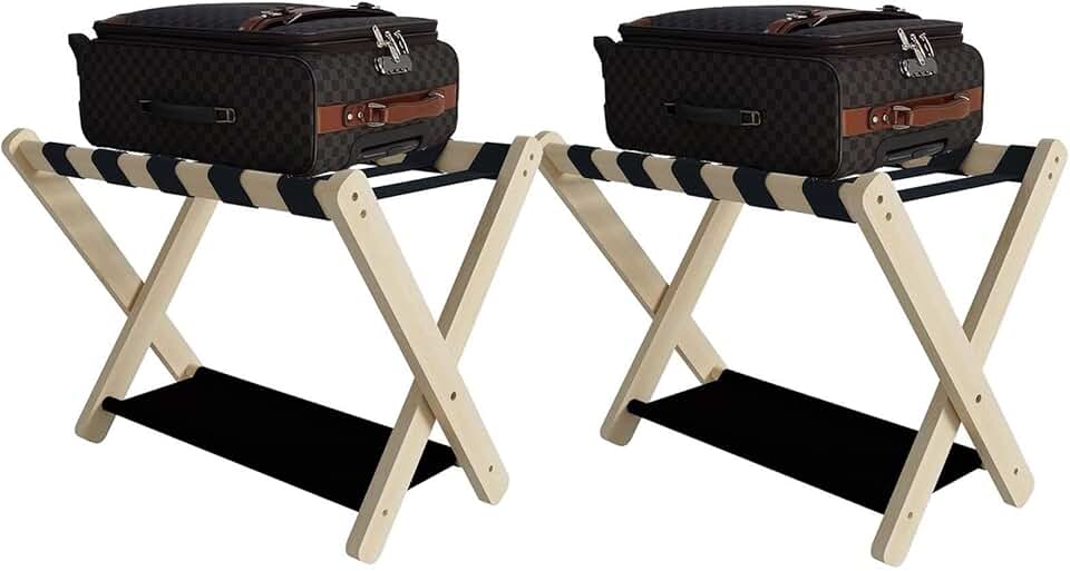 Luggage Rack for Guest Room Set of 2 - Multifunctional Storage Rack, Foldable Travel Bag Organizer with Shoe Shelf, 2 Layer Suitcase Stand Floor Luggage Stand,(27.6×17×19.7inch) (Color : Brown) (