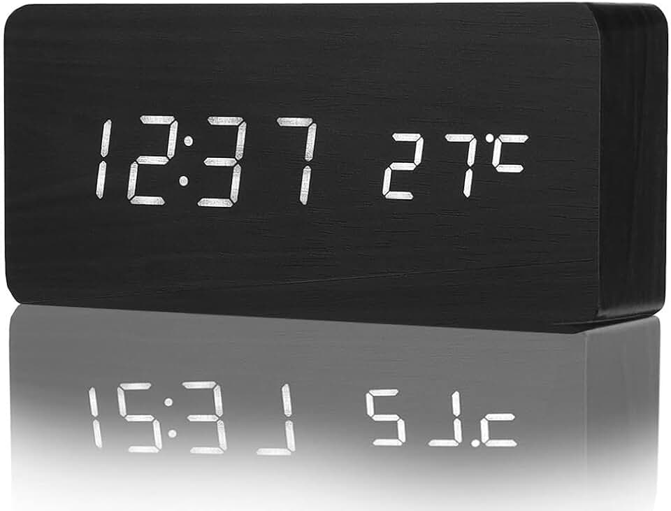 LED Digital Wooden Alarm Clock Time Temperature Calendar Desk Clock Digital Alarm Clock Home Decor (Color : E)