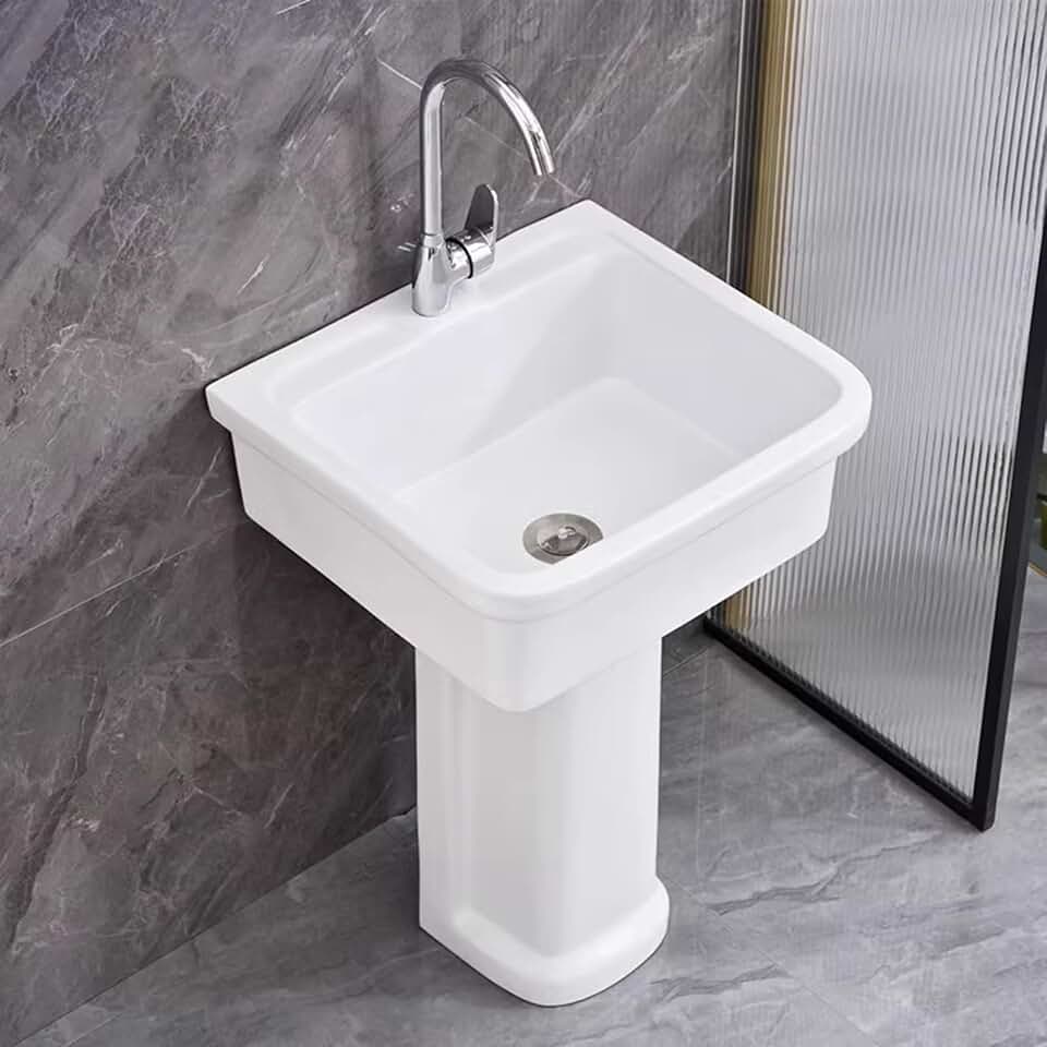Ceramics Pedestal Sink White, Bathroom Pedestal Sink, with Hot and Cold Faucet, Glossy White Pedestal Sink, Powder Room Basin, Free Standing Sink (Material : 61 * 50 * 80cm)