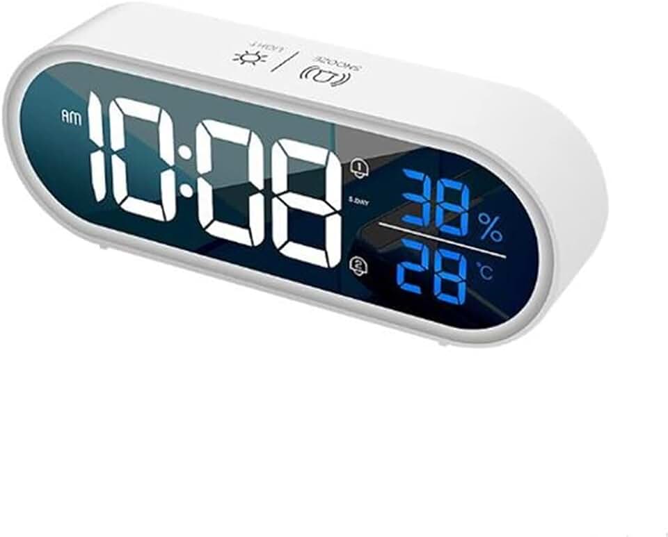 Music Electronic Alarm Clock 2 Alarm Snooze Temp Humidity Voice Control Digital LED Clock Table Clock for Living Room (Color : OneColor)