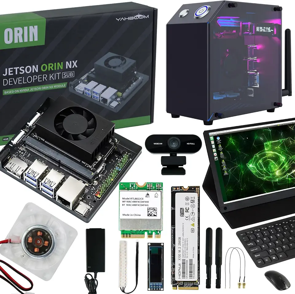 Yahboom Jetson Orin NX 8GB/16GB Development Kit for AI Robots UHD-clear 15.6in Touch Screen Jetson Case USB Camera Wire-less Keyboard Mouse,Intelligence Electronic Kit (Orin NX 8GB SUB Ultimate Kit)