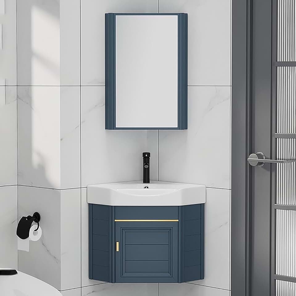 Corner Bathroom Vanity Sink, Wall Mount Bathroom Corner Sink, Ceramic Bathroom Sink, Vanity Sink Set with Mirror Cabinet for Restaurant, Bar, Cafe(38 * 38CM/15 * 15in)