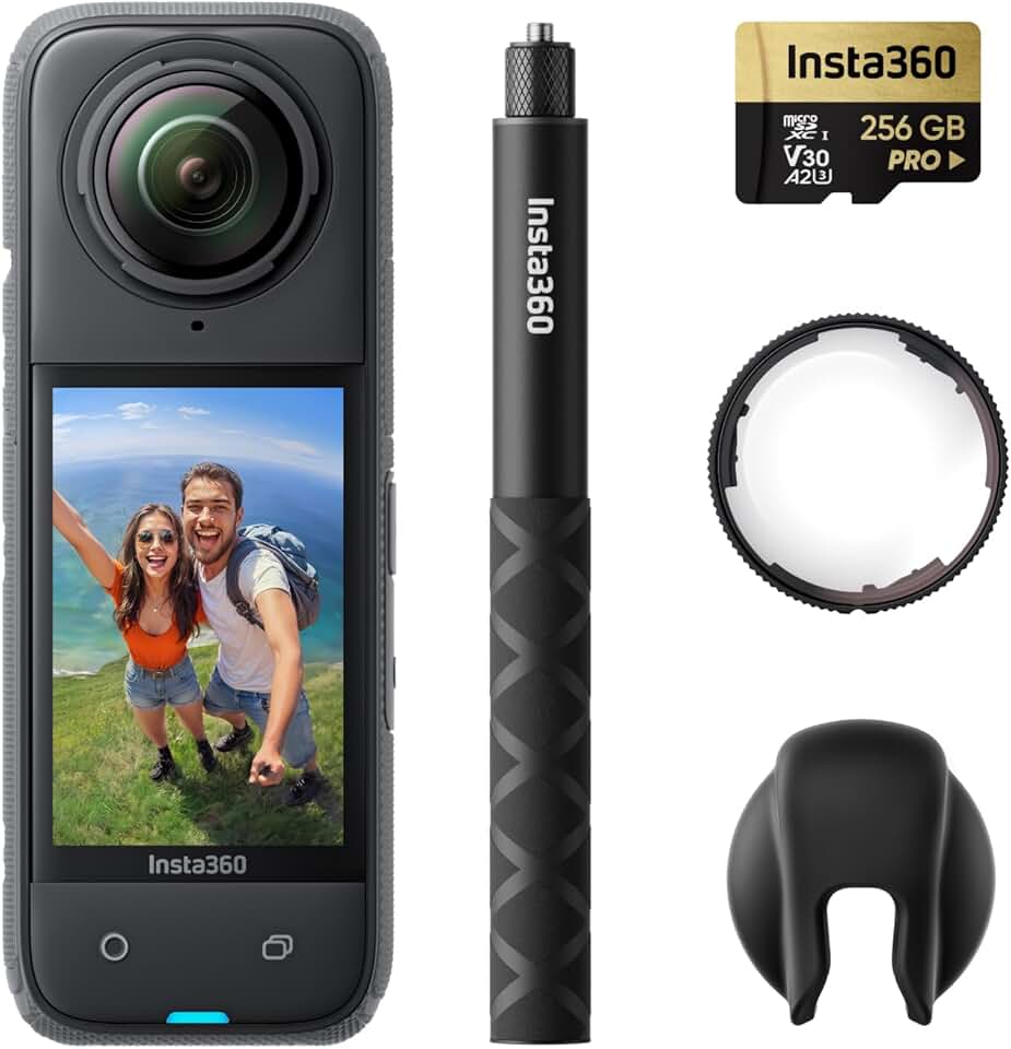 Insta360 X4 Premium Lens Guards Bundle - 8K Waterproof 360 Action Camera, 4K Wide-Angle Video, Invisible Selfie Stick, Removable Lens Guards, 135 Min Battery Life, AI Editing, Stabilization