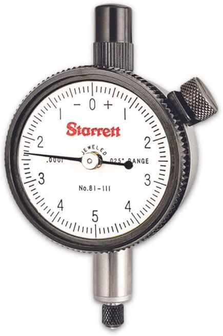 Starrett 81 Series Dial Indicator with Jewel Bearings and Lug-On-Center Back - White Face, .025" Range, 0-5-0 Balanced Dial, .001" Graduations - 81-111J