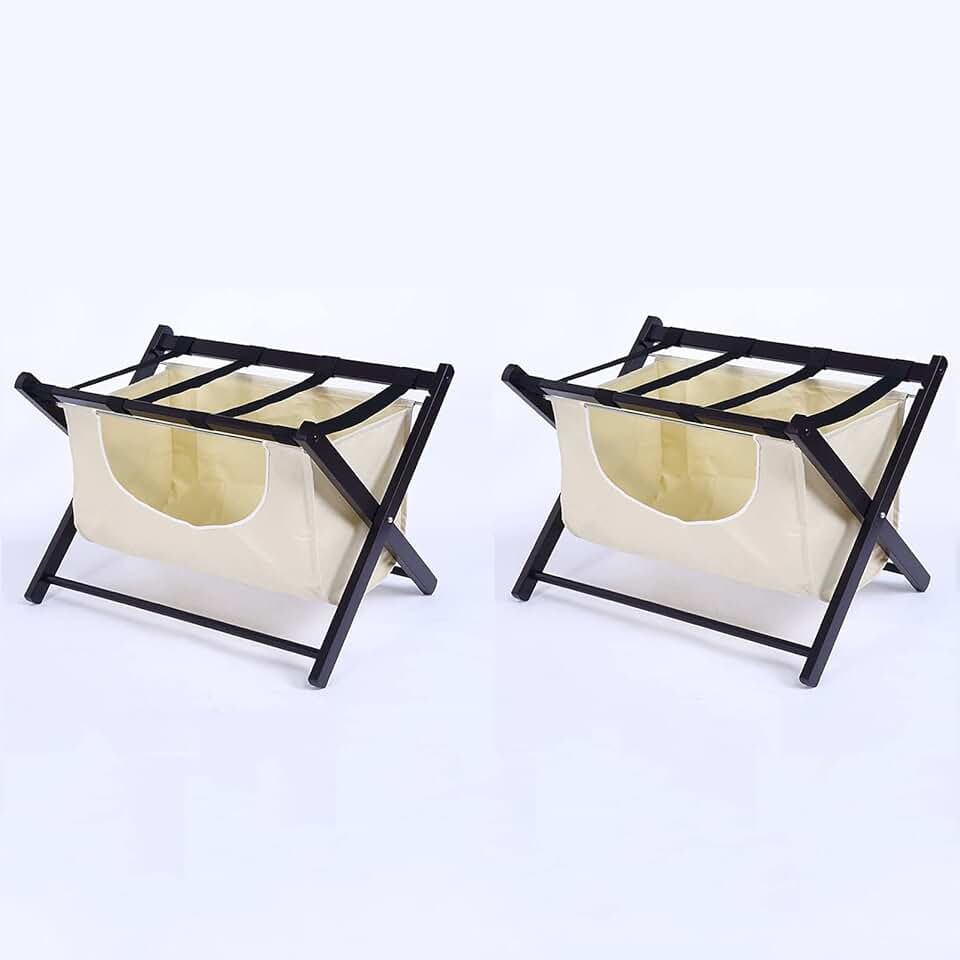 Suitcase Stand for Guest Room×2 - Foldable Suitcase Shelf, Solid Wood Floor Travel Bag Stand with Cloth Pockets, Multifunctional Storage Rack with Cloth Bag, L24.8×W13.4×H19.7in