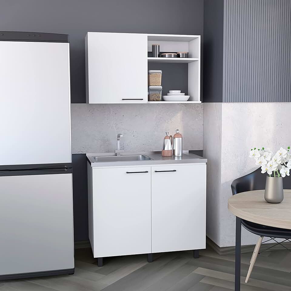 Alexandria 2 Piece Kitchen Set, Wall Cabinet + Utility Sink, White