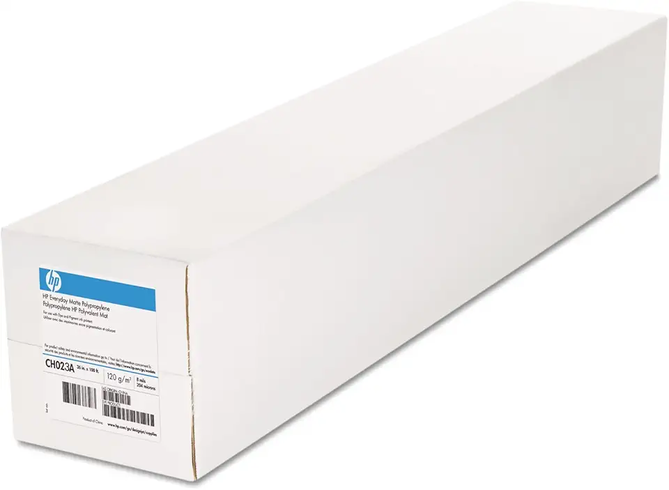 HP CH023A Everyday Matte Polypropylene Film, 8 mil, 2" Core, 36" x 100 ft, White, 2 Rolls