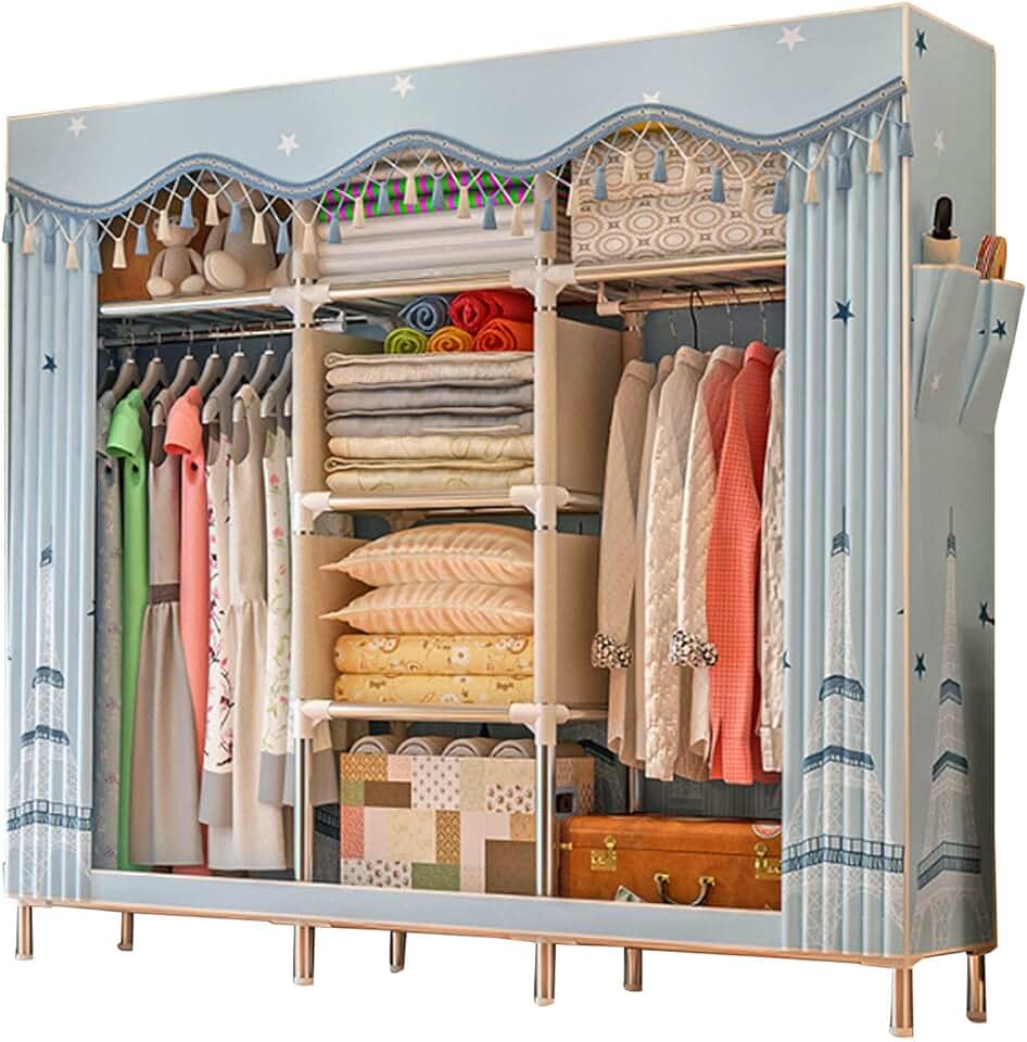 Wardrobe Portable Canvas Wardrobes, Foldable Closet, Closet Storage Organizer with Hanging Rail, Fabric Cover for Clothes, Bags, Shoes,B-168x46x172cm