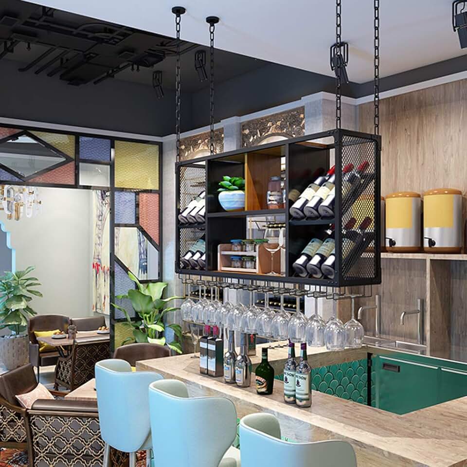 Wine Glass Hanger Ceiling Wine Racks Iron Chain Connection Adjustable Bottle Organizer and Stemware Storage Holds Any Type of Stemware Glassware Wine Glasses Sand