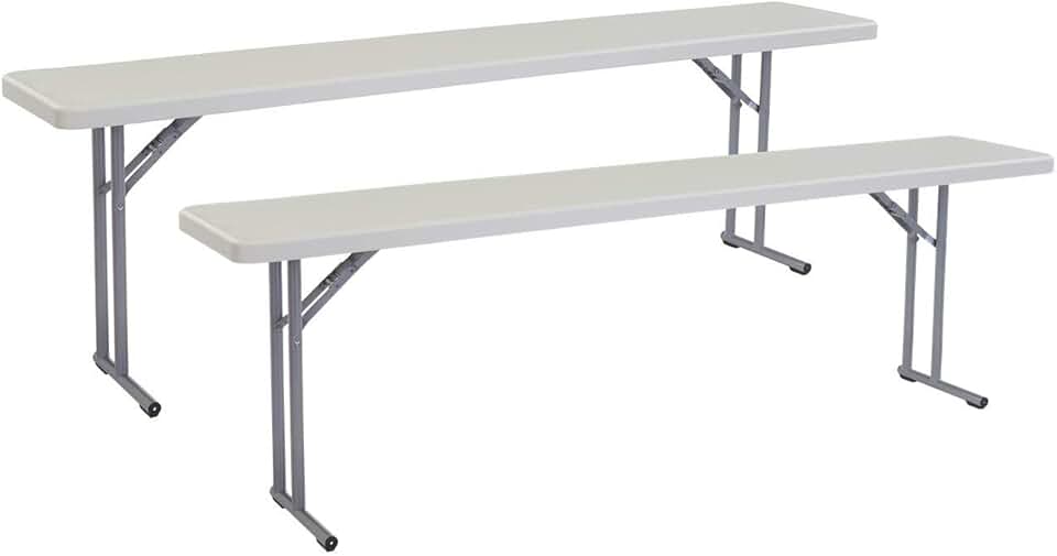 (2 Pack) National Public Seating 18" x 96" Heavy Duty Seminar Folding Table, Speckled Gray
