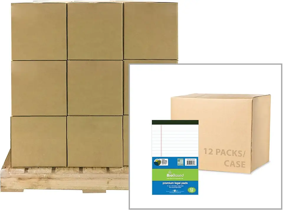 Pallet of 25 cases (300 Total) Bio-Preferred Junior Legal Pads, 5"x8", 40 Sheets/Pad, Premium 20 lb White Paper, Micro-Perforated, Wide Ruled