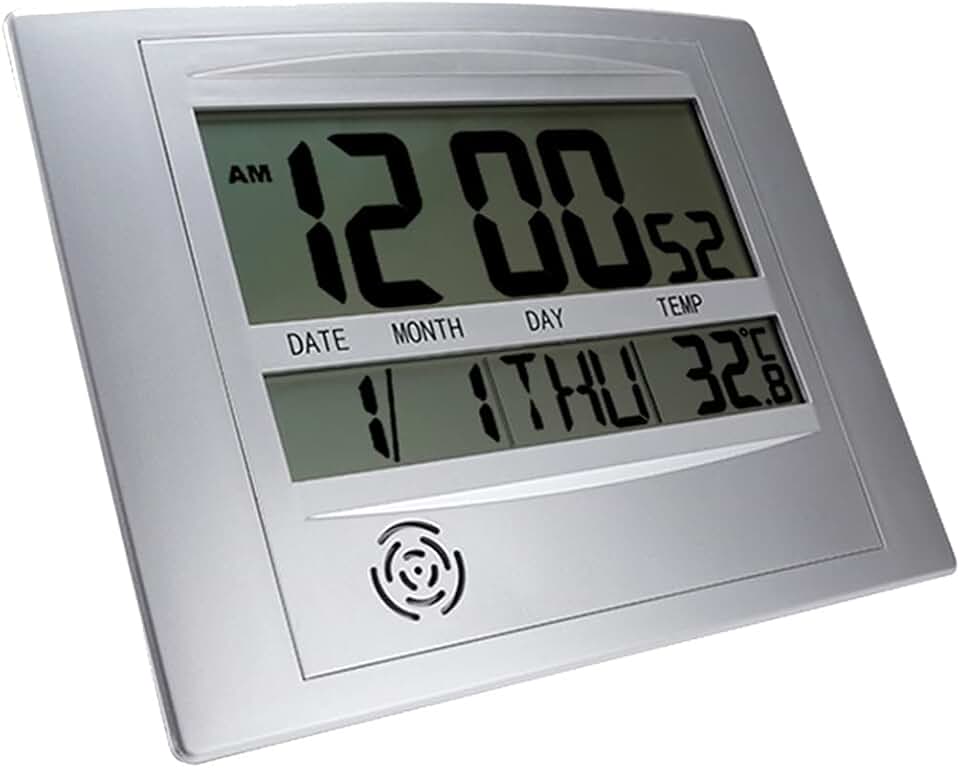 Digital Wall Clocks Atomic Desk Alarm Large Display Battery Operated Calendar Wall Sticks Home Office Indoor Temperature Clock