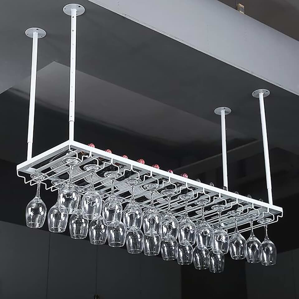 Ceiling Metal Wine Rack, Height Adjustable, Hanging Decoration Stand, Goblet Stemware Holder, for Bars/Restaurants/Kitchens (Color : White, Size : 60cm)