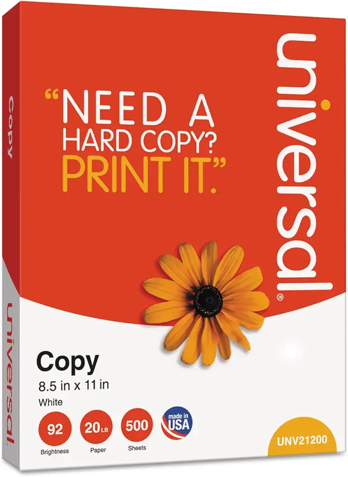 Universal 21200PLT Copy Paper, 92 Bright, 20lb, 8.5 x 11, White, 500 Sheets/Ream, 10 Reams/Carton, 40 Cartons/Pallet