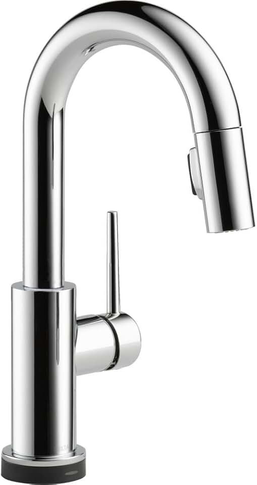 Delta Faucet Trinsic Touch Bar Faucet with Pull Down Sprayer, Chrome Bar Sink Faucet Single Hole, Wet Bar Faucets Single Hole, Prep Sink Faucet, Delta Touch2O Technology, Chrome 9959T-DST